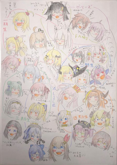 「ホロライブ相関図」 1枚目…身内編(4期生まで) 2枚目…外部との絡み編 3枚目…描ききれなかった分 4枚目…5期生へ 5枚目(リプ欄)…おまけ🦈 ↓以下タグ博物館 #祭絵 #絵フブキ #アロ絵 #はあとart #メルArt #百鬼絵巻 #シオンの書物 #プロテインザスバル #あくあーと #しょこらーと