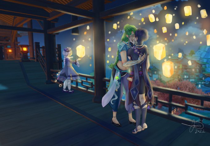 Repost because I realize that I messed up the lighting in some areas and forgot the shadows,,, anyway yes, Scaramouche x Baizhu #scarazhu #Scaramouche #Baizhu #Qiqi #GenshinImapct #genshinimpactfanart