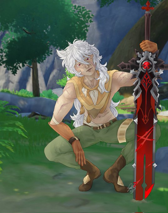 Wolf boy Yes the background is a screenshot. Razor himself and the sword already took 20 hours and I don't have the patience lmao #Razor #GenshinImpact #genshinimpactfanart