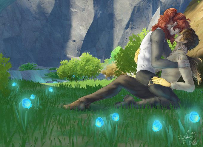 Okay I felt like something was off so I fucked with the lighting <3 #dilttore #dottore #diluc #BadWine #genshinimpactfanart twitter.com/Z3phyrus__/s…