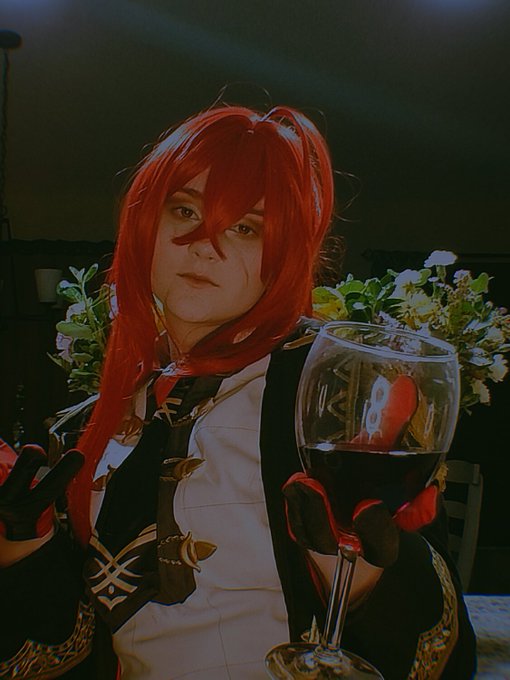 I've had the cosplay for a couple months but I finally actually cosplayed him that's not real wine. Just water and food dye. #diluc #dilucragnvindr #cosplay #diluccosplay
