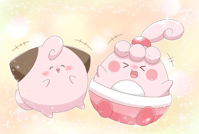 おしゃべりをしていたら面白くなっちゃって、大笑いをしているピンプクちゃんとピィちゃん😆😆✨ #ポケモン #イラスト