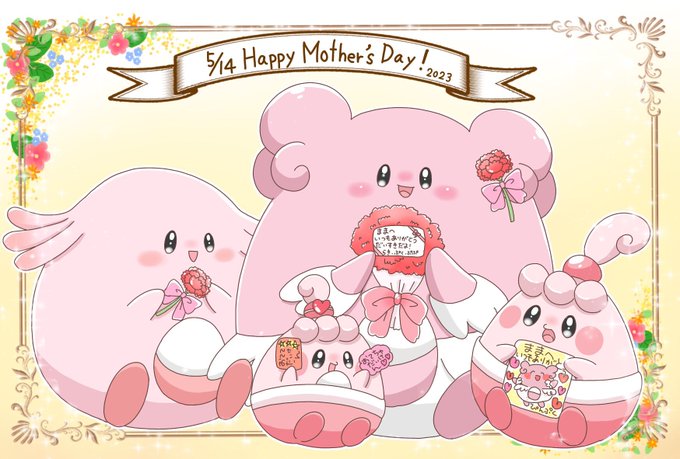 今日は母の日☺️🍀 #ポケモン #イラスト #ハピナス
