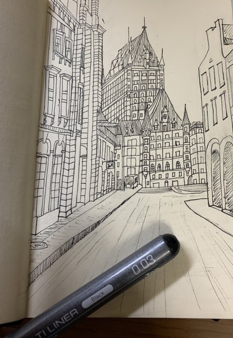 0 3 おはよう御座います 今回は海外の方が描かれた絵を模写させていただきました 細かく描いたので達成感に浸ってます #ペン画 23/03/22 07:27