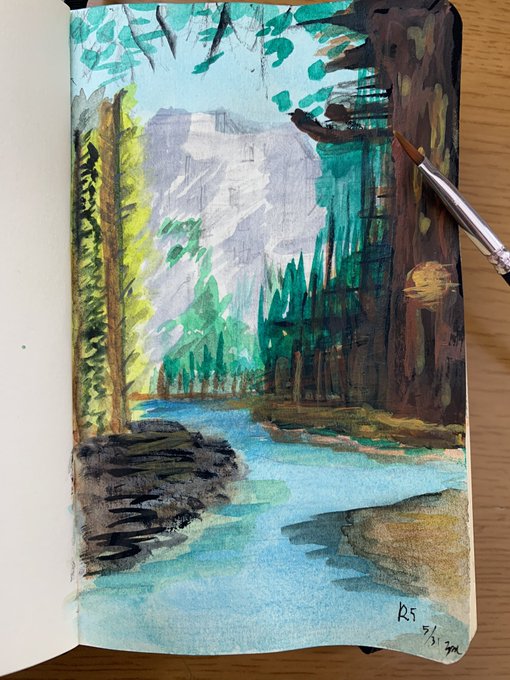 0 3 山脈 #アクリル画 #水彩画 #イラスト #手帳 23/06/01 08:09