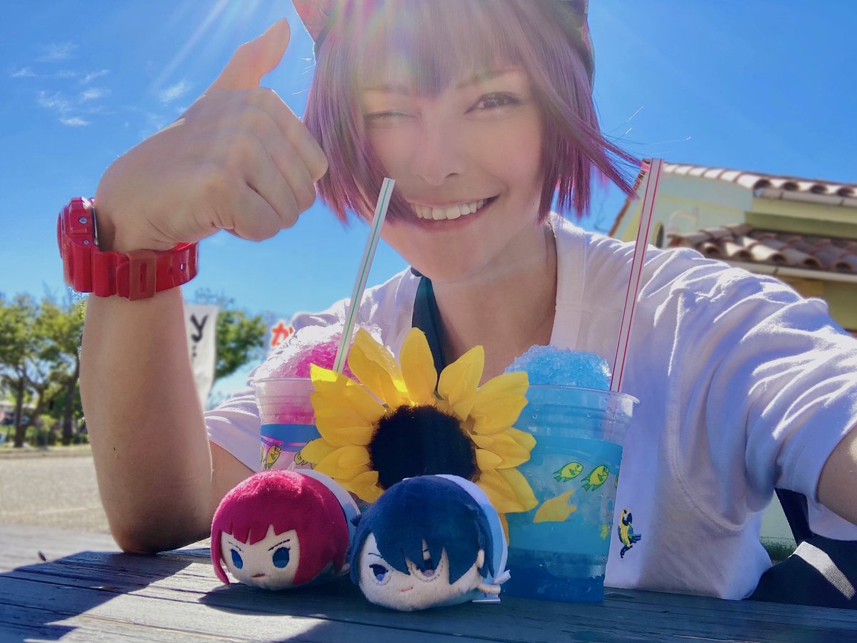 16 200 忍岳と忍岳の概念色のかき氷機を並べて楽しむオタク。今日一の笑顔💙💝 20/08/30 23:36