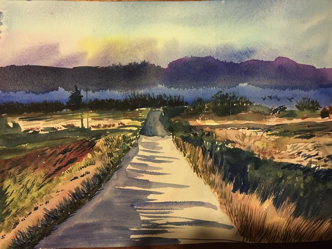 水彩画(模写) 夕焼けの道 #水彩画