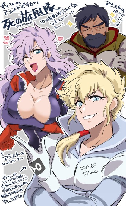 163 535 ビギナ・ギナII(木星決戦仕様)とギリさん参戦おめでとう~!の時に描いたギリさんとバーンズ大尉とローズマリーさんのデスゲイルズの絵 23/08/16 19:54