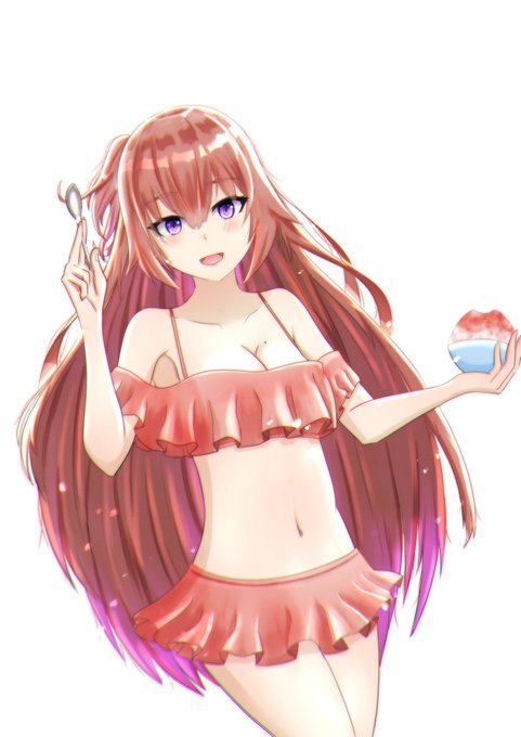 9月になってしまいましたが、2枚目の水着です! かき氷難しかった💦 #イラスト