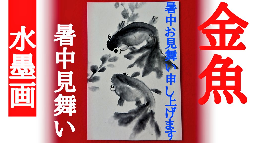 水墨画で暑中見舞いハガキ「金魚」 梅雨明け7月7日頃~8月6日頃の立秋前までにお届けね #水墨画 #金魚 #イラスト #絵描きさんと繋がりたい #暑中見舞いの日 #youtubechannel 描き方配信中です👇 youtu.be/-xApMLuRR6Y