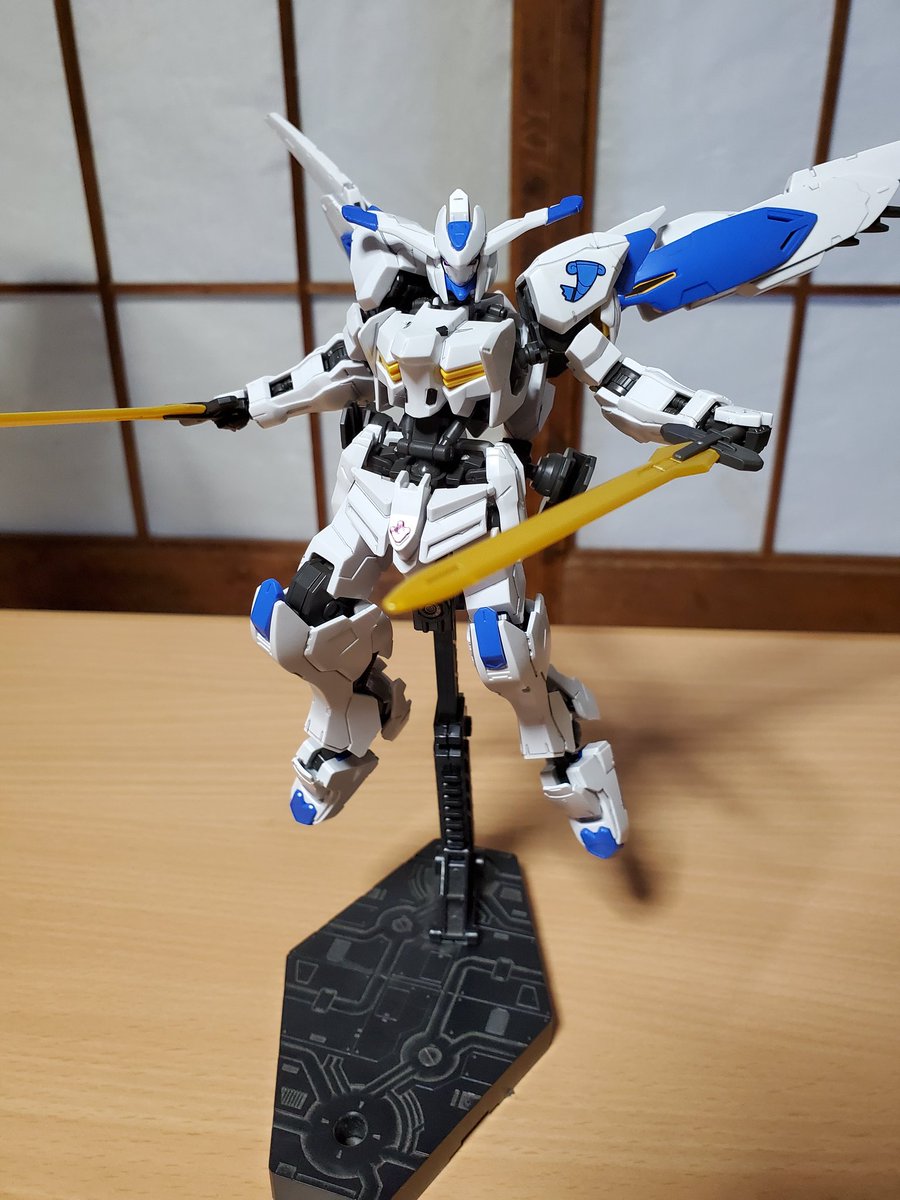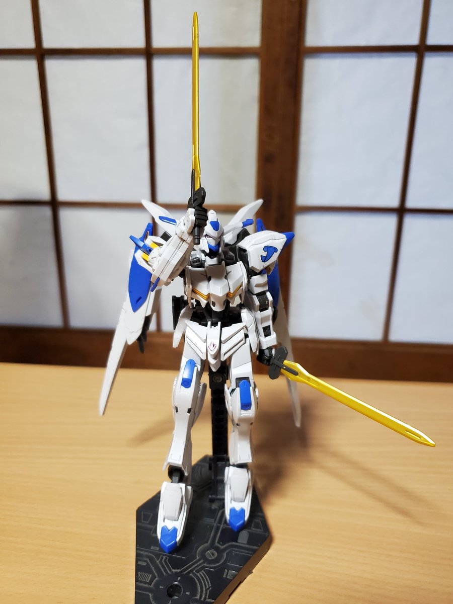 ガンダムバエル完成~! 聞け!ギャラルホルンの諸君! 今、300年の眠りからマクギリス・ファリドのもとにバエルはよみがえった!! 特徴のあるポーズがあるとやっぱりバエルね、ガンダムバエルだけに… #ガンプラ #ガンプラ好きと繋がりたい #ガンプラの画像貼るとRTされると聞いて