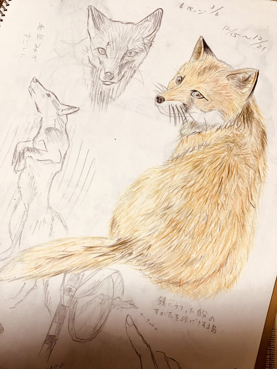 #きつね #イラスト? #色鉛筆 ピギャー!!前に書いたやつ出てきたー どうかな?