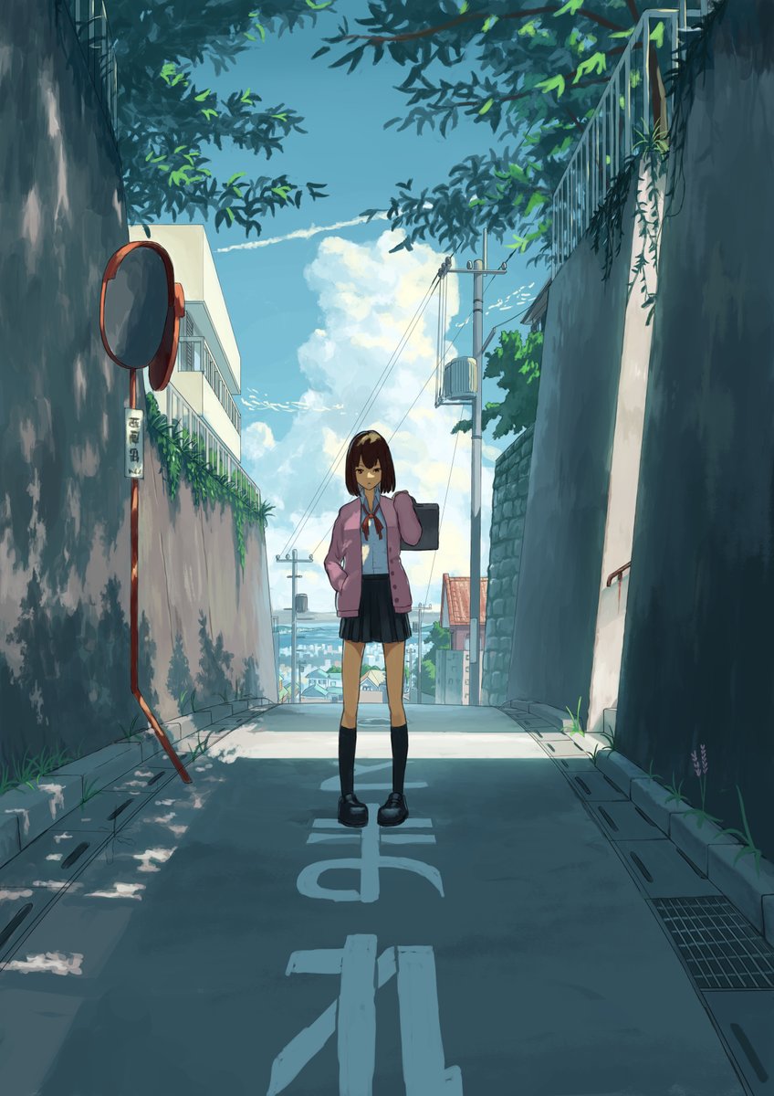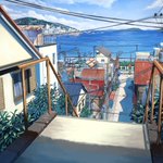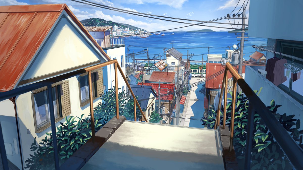 3 29 海の見える街 キャラなしもご一緒にどうぞ 塗りより線画がきつかったです #イラスト #背景 22/10/18 19:19