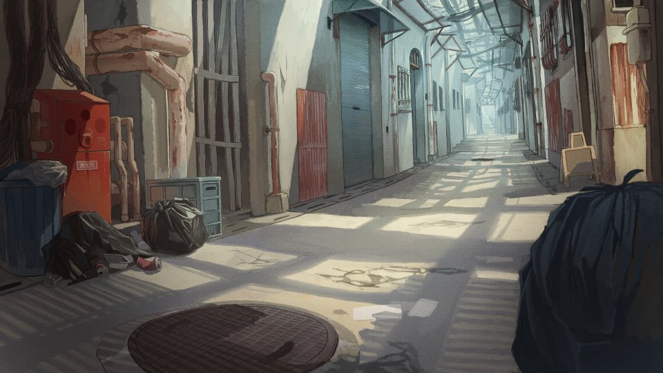 貧民街っぽい路地。 商用でなければ動画などでお使いください 1920×1080↓ seiga.nicovideo.jp/seiga/im111357… #イラスト #背景素材