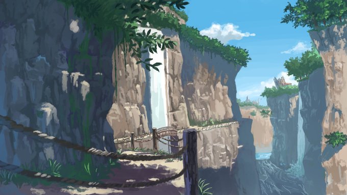 2 28 脳内記憶にあるビサイド島 画像見たら右側は海でした #イラスト #背景 23/03/12 12:08