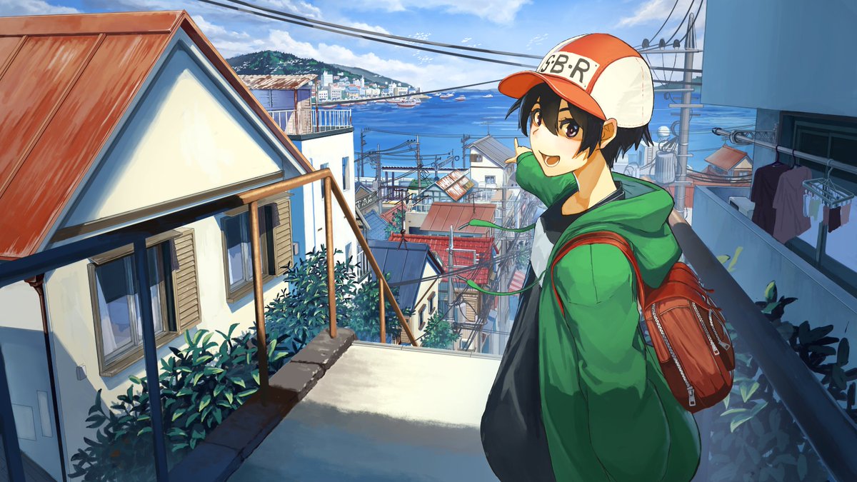 海の見える街 キャラなしもご一緒にどうぞ 塗りより線画がきつかったです #イラスト #背景