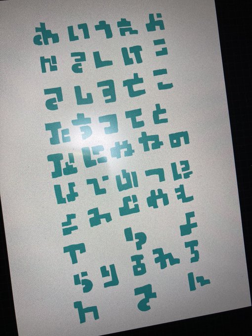 友人とスプケに出る時にクサヤ温泉グッズを作ろうということになりまずはひらがなでも全部つくるか…と作りました(スプラ内に出てくるひらがなのいかたこを参考に増殖)