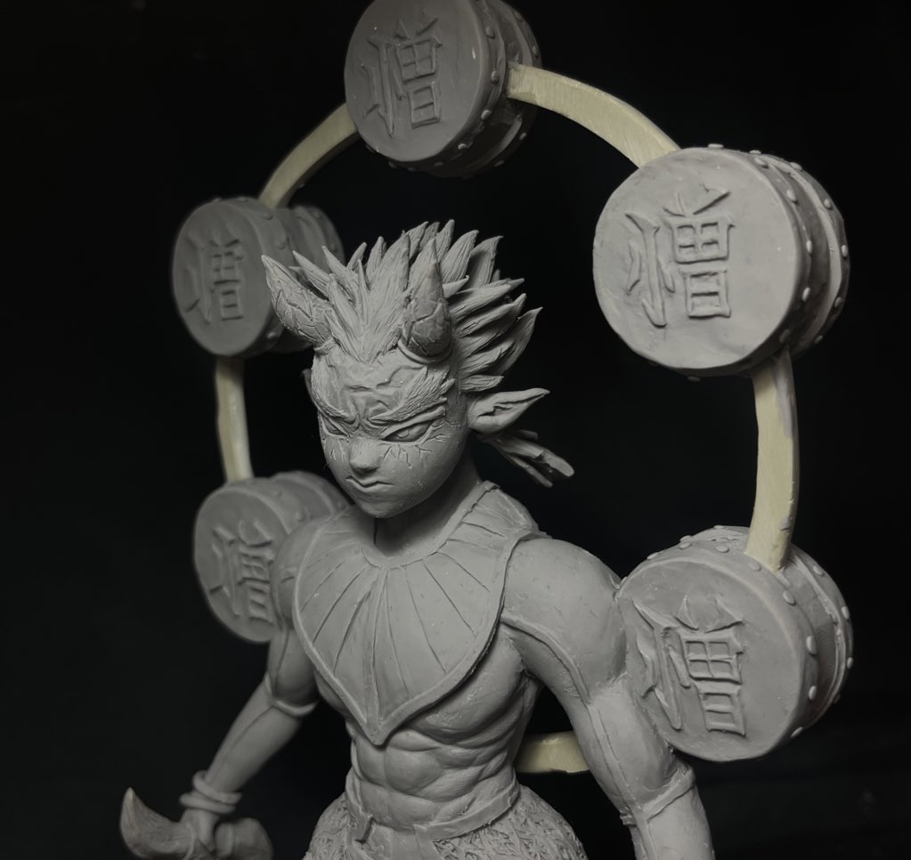 腰に固定されている太鼓が腕に食い込むような造形になっています 絵と3Dではそのまま再現できないのと これはこれで安定感があって良き🙂 あと背景作って色塗って動画編集して、、、長い #鬼滅の刃 #ゴールデンウィークSNS展覧会2023 #みんなで楽しむTwitter展覧会 #GWはフォロワーが増えるらしい