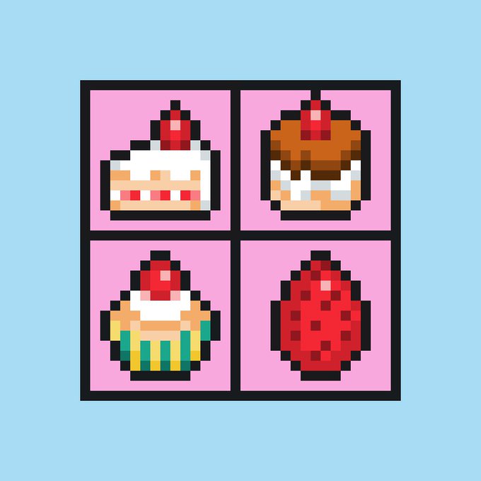 3 4 いちごsweets🍓曲線と直線が混じり合って結構難しい…。 #ドット絵 #pixelart #いちごまみれ 22/09/27 09:00