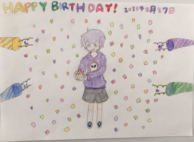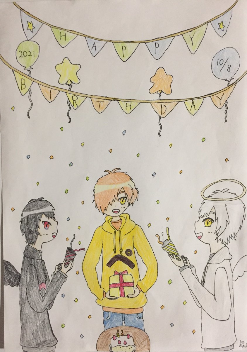 誕生日おめでとうございます🎉 下手ですが頑張って誕生日イラスト描かせていただきました! これからも応援してます! 無理せず頑張ってください! #しにがみあーと #しにちゃんはっぴよばーすでー2021