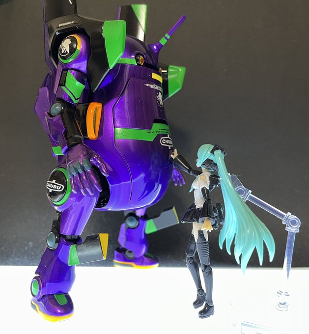 ハンドスケール初音ミクと。 これがやりたくてハンドスケール買いました。 これでウィーゴでエヴァ作るの最後になるかと思います。 長らくお付き合い頂きありがとうございました〜。 #メカトロウィーゴ #ハンドスケール