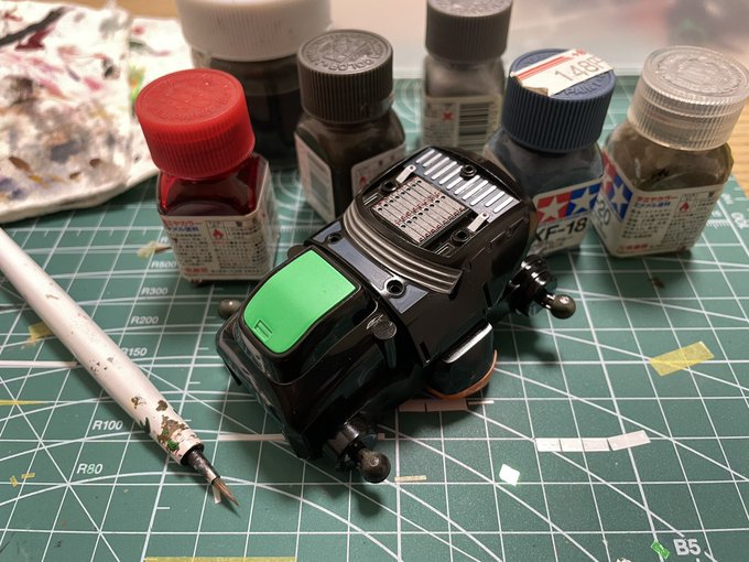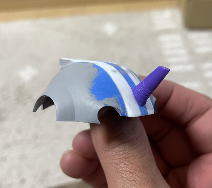 3 9 サフ→パテ→サフ→パテ→サフ→仮組 プラモ作り始めてあまりやった事無い作業。 なんとか(大きな、目立つ)キズ、継目消えた。 配色考えたら塗装に入ります。 #メカトロウィーゴ 22/12/24 10:58