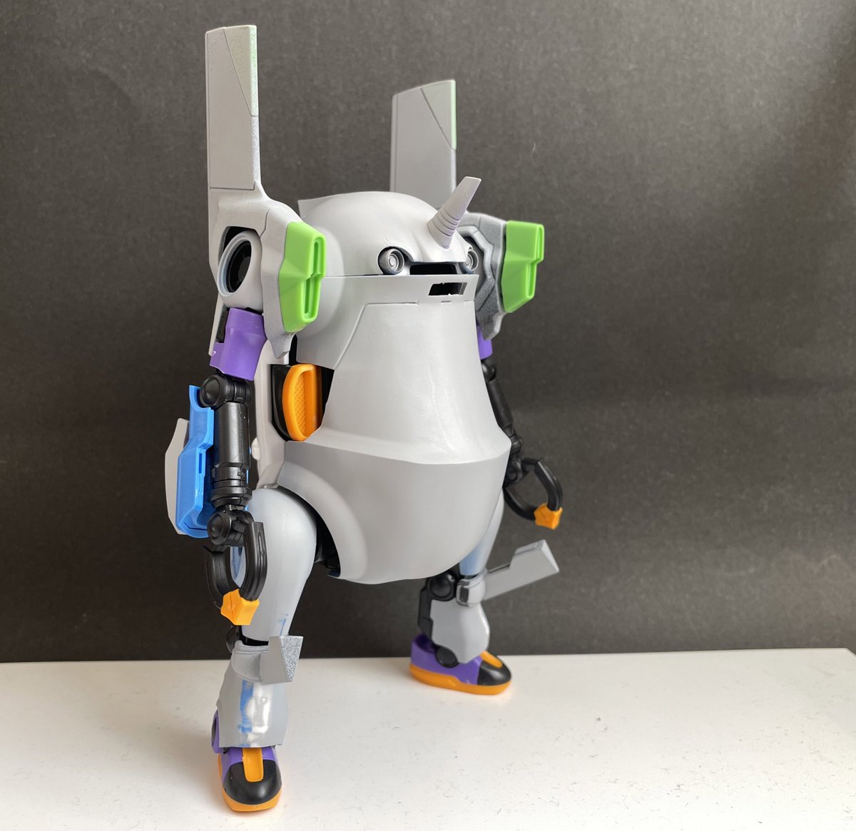 サフ→パテ→サフ→パテ→サフ→仮組 プラモ作り始めてあまりやった事無い作業。 なんとか(大きな、目立つ)キズ、継目消えた。 配色考えたら塗装に入ります。 #メカトロウィーゴ