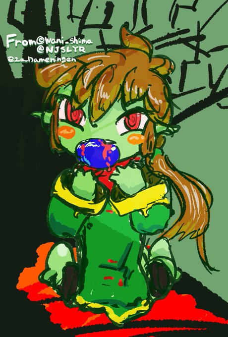 @wani_shima=サンのとてもカワイイエメラルド=サンのイマジナリデザインを元に描かせていただきました #ウキヨエ #イマジナリフリー twitter.com/wani_shima/s…