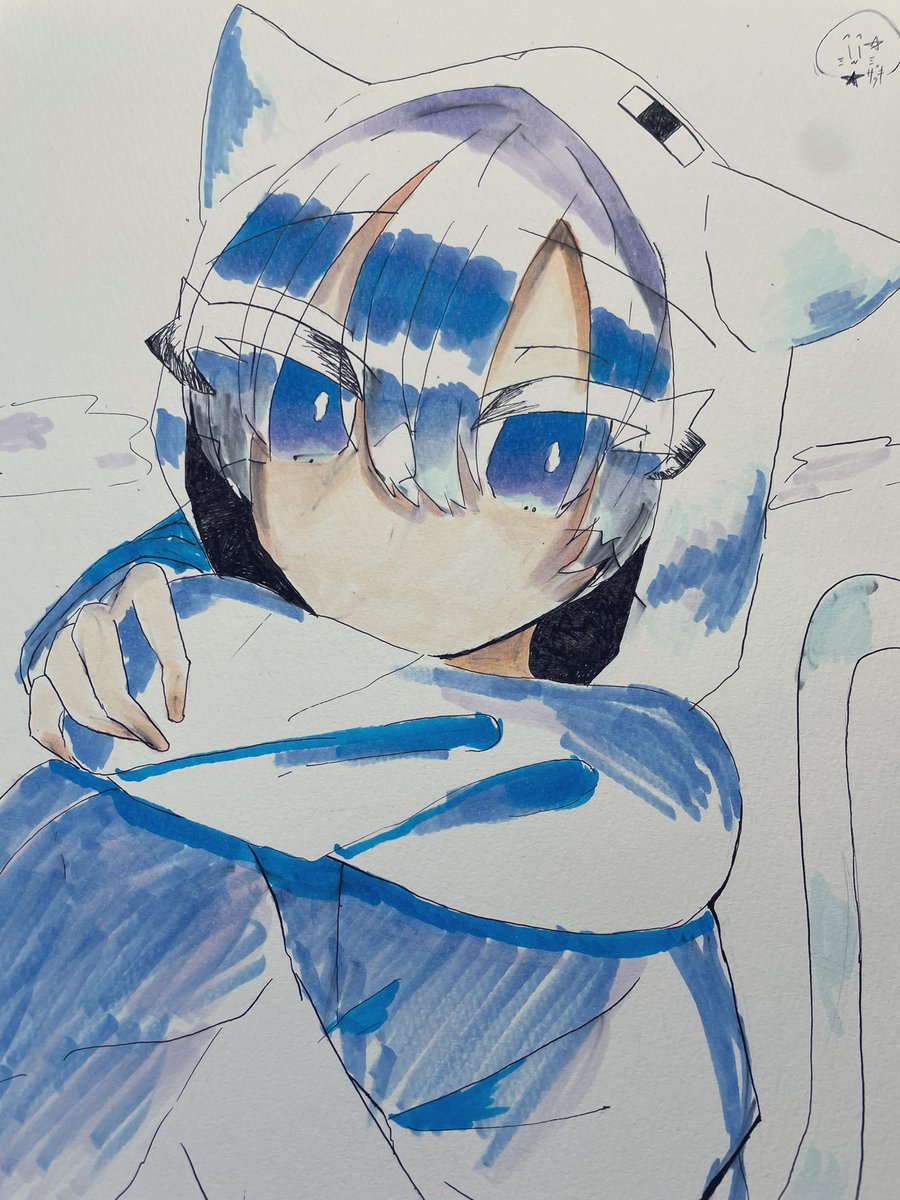 0 6 黒のインクが切れていたため青で塗ってみた所、スマブラの2Pカラーみたいになってしまった #クロノアの美術館 21/07/20 15:04