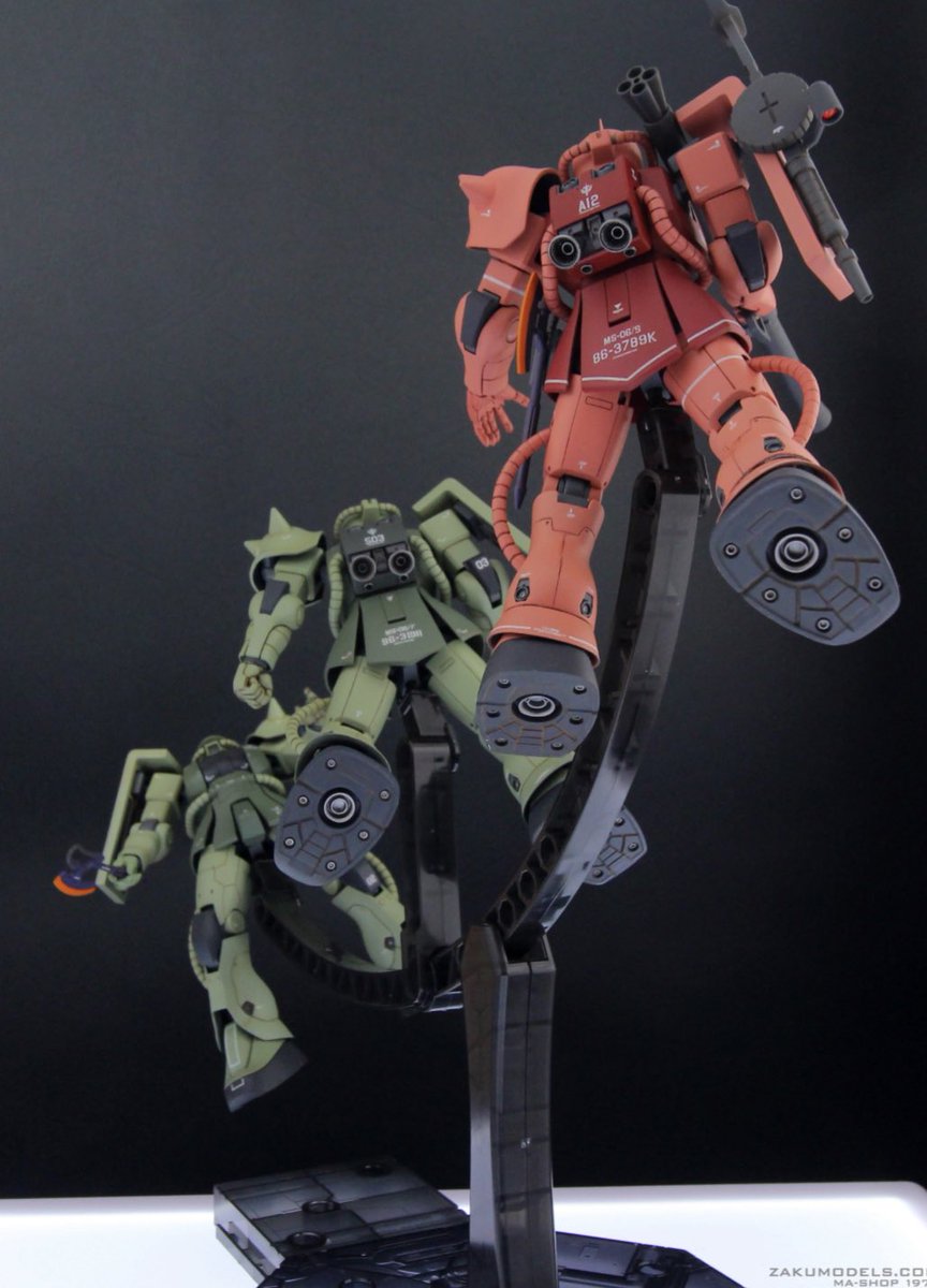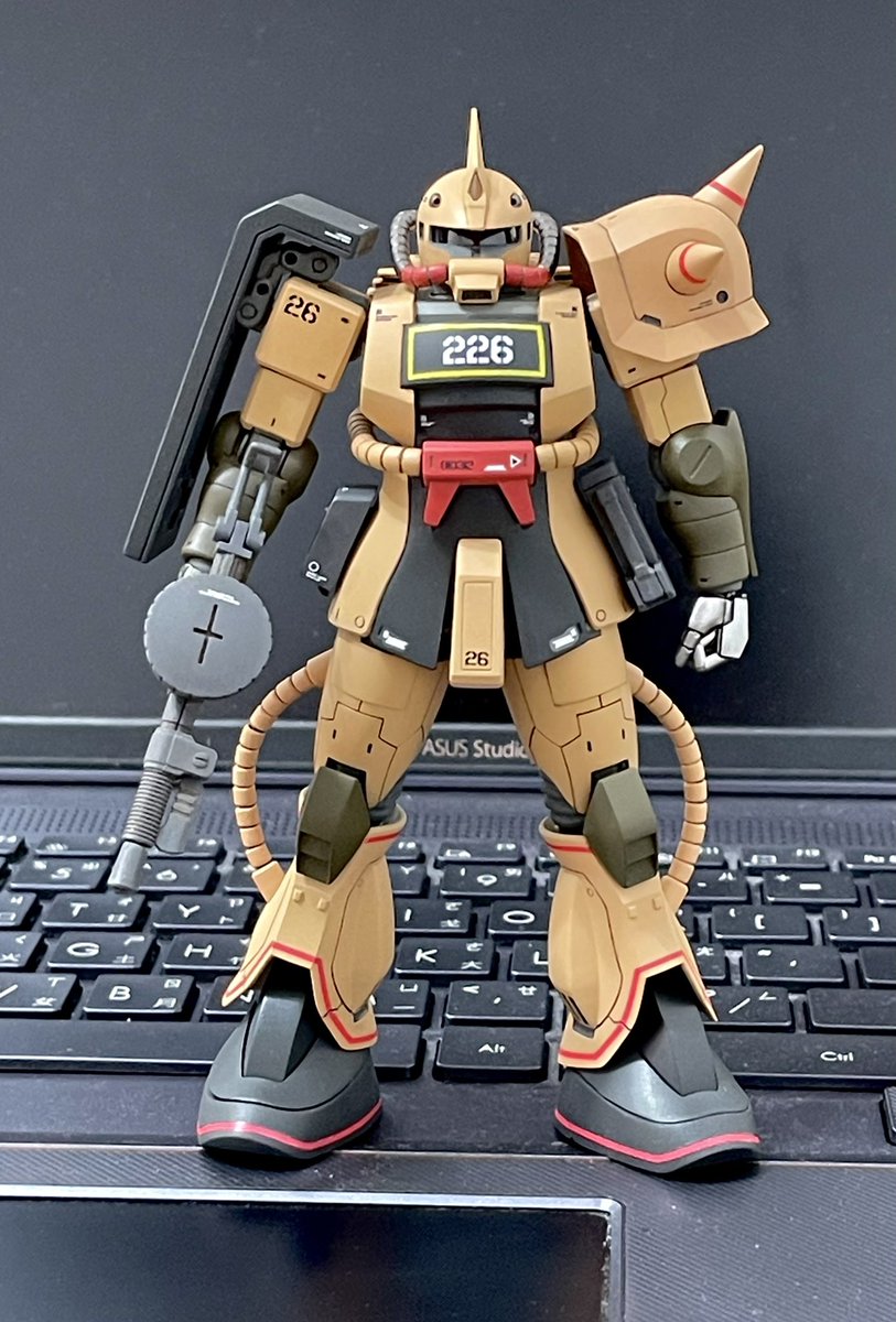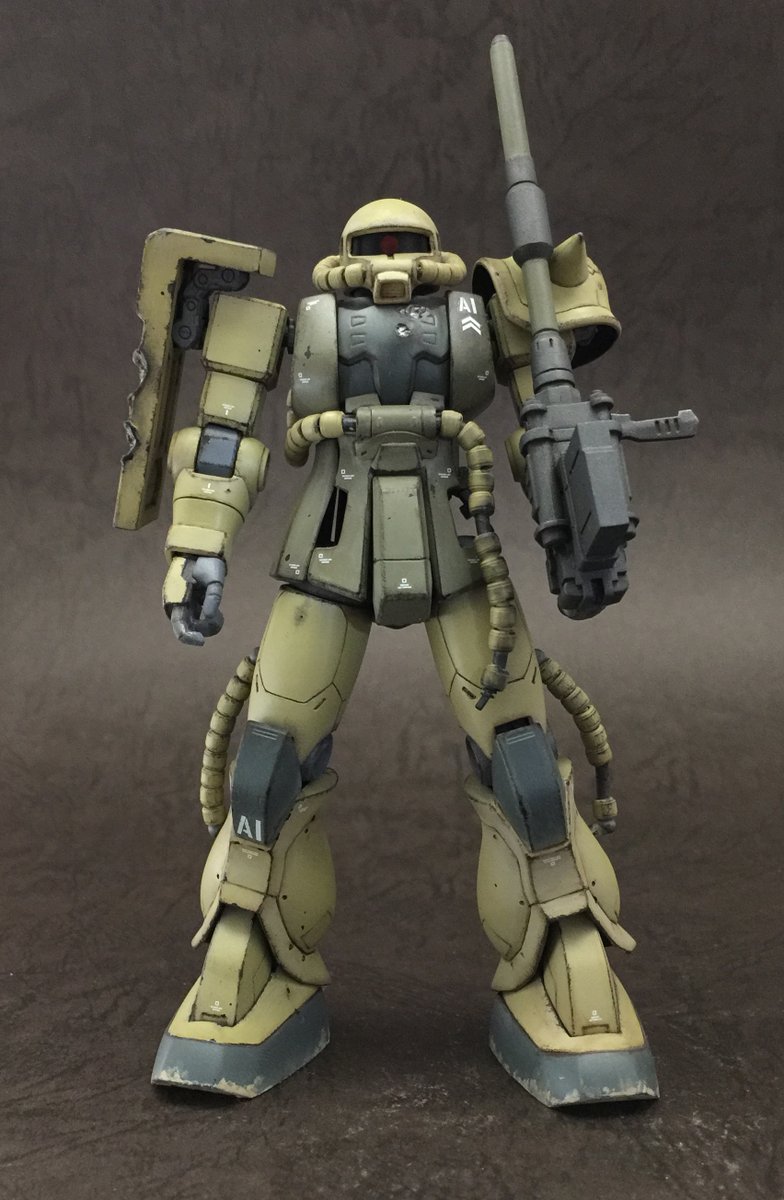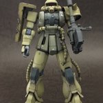 #みどりの日だから緑色のプラモデルを貼る 自分の中で「これ以上アレンジする必要が無い」を目標に纏めたザクです。最近は脛の丸みが足りないとか口が大きいとかが気になって来たのでそろそろ次にかかろうかと。2002HGUCザクベースからリバイブかジオリジンベースになると思います。