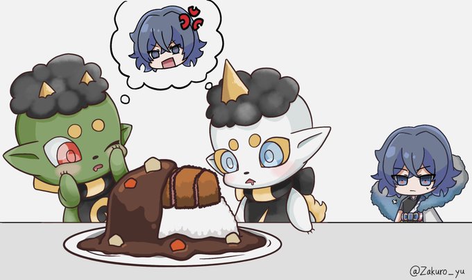 13 59 #妖怪ウォッチ #イラスト 3キロもあるメガトンカツカレーを食べてるカイラ…見てみたい… フウくんライちゃん初描き。 22/08/04 17:08