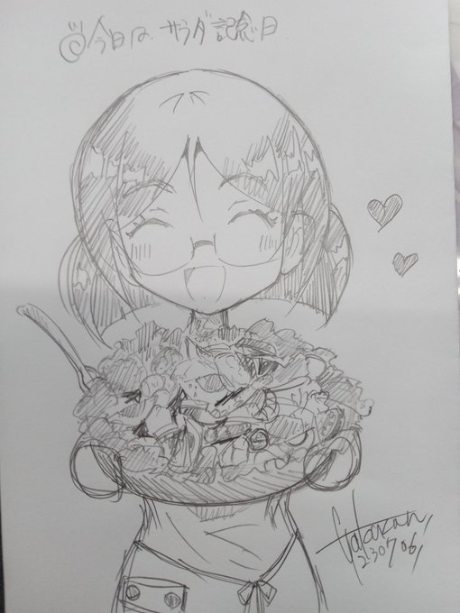 31 135 落書き 今日はサラダ記念日らしいですよ😊✨ 暑かったのでさっぱりしたものが 食べたくなりますね😊💦 23/07/06 18:50