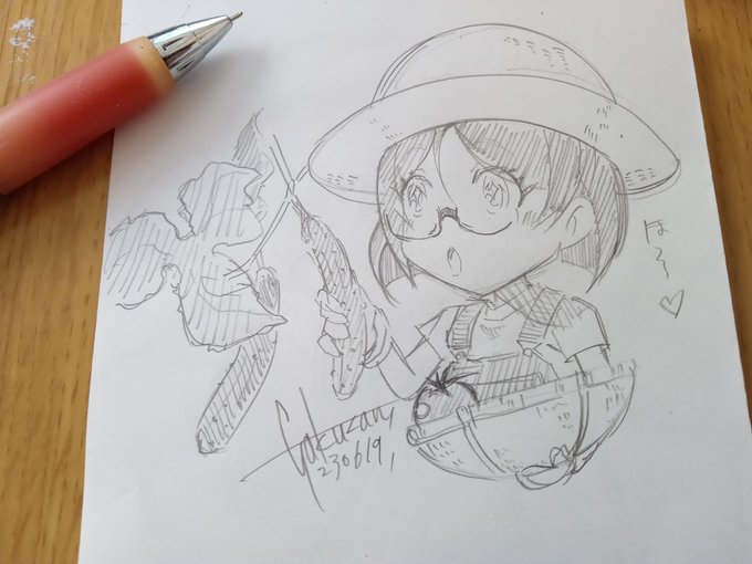 42 164 落書き 霧島さんと川辺の蛙さん😊✨ 23/06/25 08:12