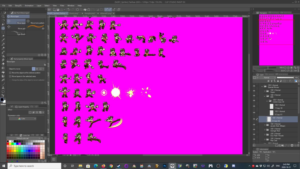 Saturday Night, doing Sprites. I made basic attacks and three special moves. Renmia can fight! Just like the World Warriors! #NeoGeoPocket #GameSprites #PixelArt #MUGEN
