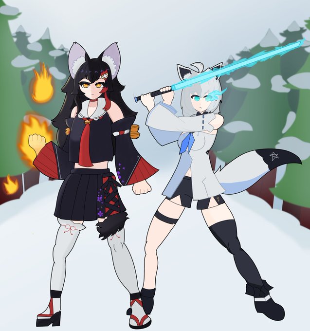 フブミオALT 🦊🐺 #みおーん絵 #絵フブキ