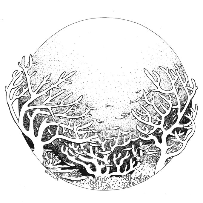 Inktober 2020 Day 20: Coral Hoping this one turned out great, pointillism is so hard sometimes ! 👀 #inktober #inktober2020 #inktober2020coral #inktober2020day20 #coral #fish #water #art #drawing #inkdrawing #Zanya_FR