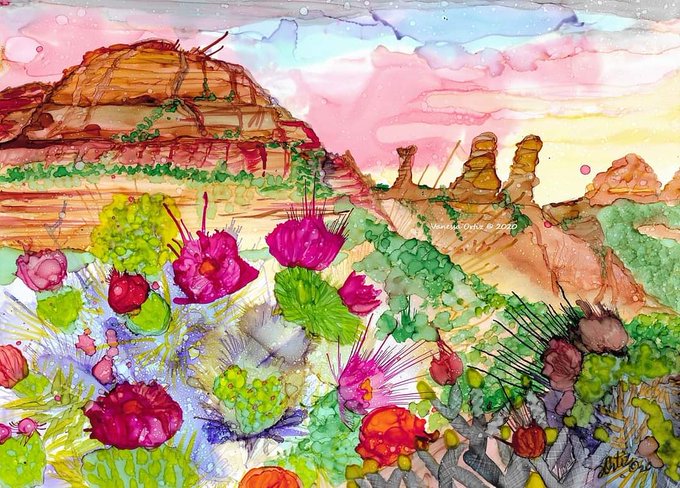 Blooming Sedona by Vanessa Ortiz © Original Alcohol Ink Painting 2020. #twitterartist #Artist #painting #art #Arizona #sedona #freedom #inktober2020 #inktober #PositiveVibes