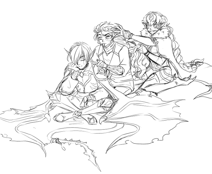A moment of peace. A wip of Tommy with my two OC's, Glade (a phantom hybrid) and Arka (spider hybrid). #tommyinnitfanart #originalcharacters #WIP #dreamsmpfanart