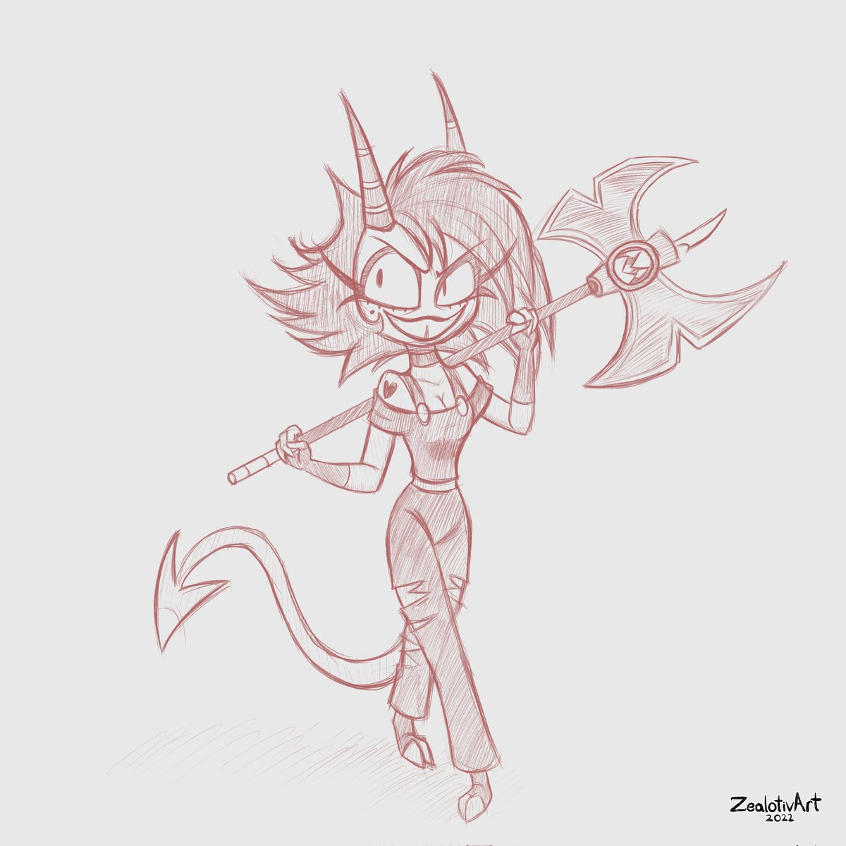 It's been ages since I last draw any Helluva Boss characters, so here's a sketch of Moxxie 😈🎸 #helluvaboss #helluvabossmoxxie #moxxie #HelluvaBossFanart #ArtistOnTwitter #traditionalart