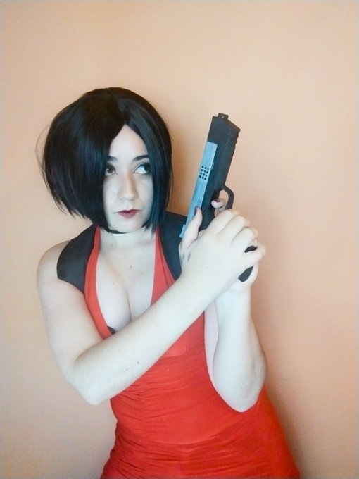 Incluyó la segunda foto porque no recordaba como se tomaba la pistola y estaba tipo "así? no.. el dedo iba más acá" me parece graciosa, tuve que buscar en Google como se tomaba correctamente -y aún así creo que está mal- xD . #adawong#cosplay#ResidentEvil#cosplaychile