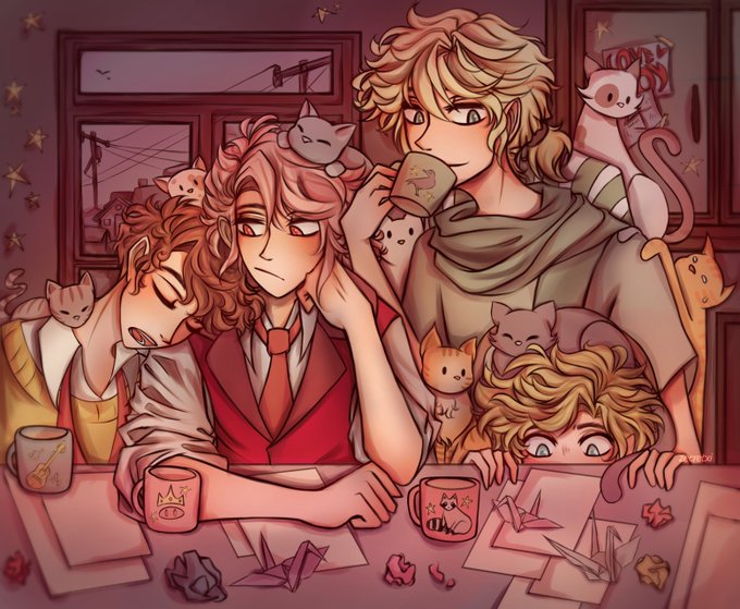 Huddled together with catss🧡 #sbifanart #wilbursootfanart #tommyinnitfanart #philzafanart #technobladefanart