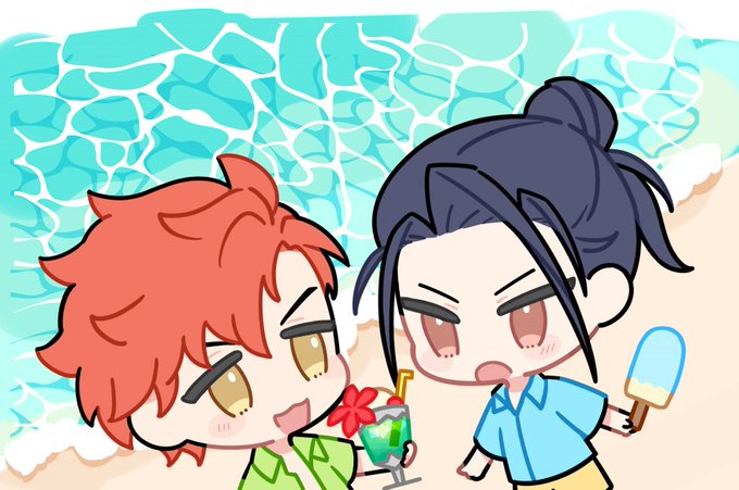 23 69 アクキー完売したし夏だしなので元絵を載せます。夏シルヴァン&フェリクス🌊🏝️ 23/07/27 01:05