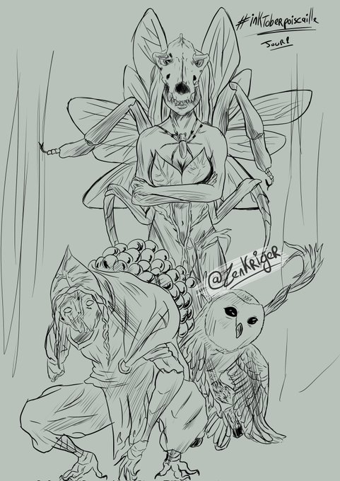 0 2 #inktoberpoiscaille jour 2 Reine de la forêt (avec 2 sbires) #art #Inktober 22/10/03 03:55