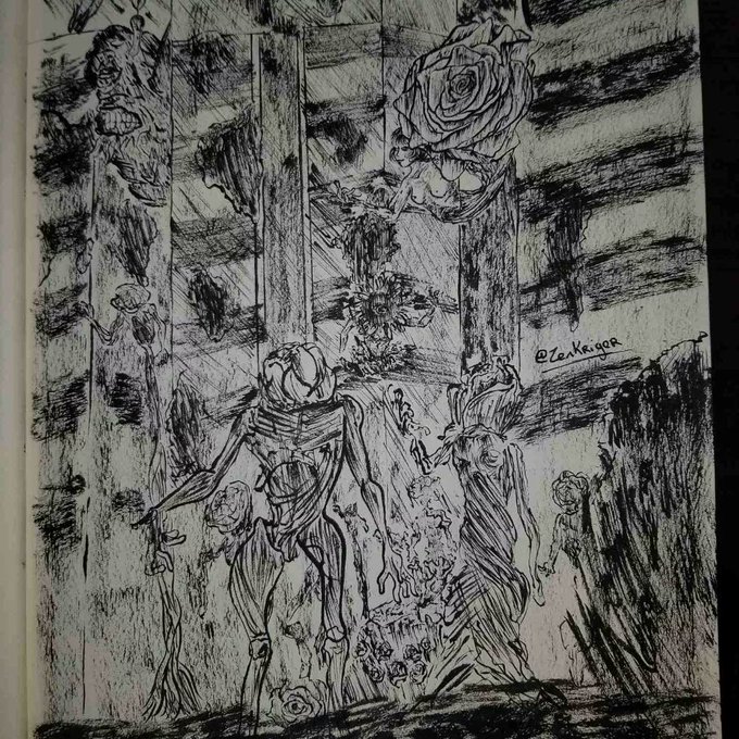 0 1 Jour 16 du #inktober Floraison (parasite) #art #rose #dark 22/10/23 14:26