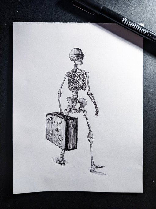 07. Trip / voyage Ce thème ne me donnait vraiment pas envie (c'est pour ça que le dessin n'est pas ouf) alors j'ai décidé d'envoyer Mr Skeleton en vacances 😎 #inktober #inktober2022 #inktober2022day7 #inktoberday7