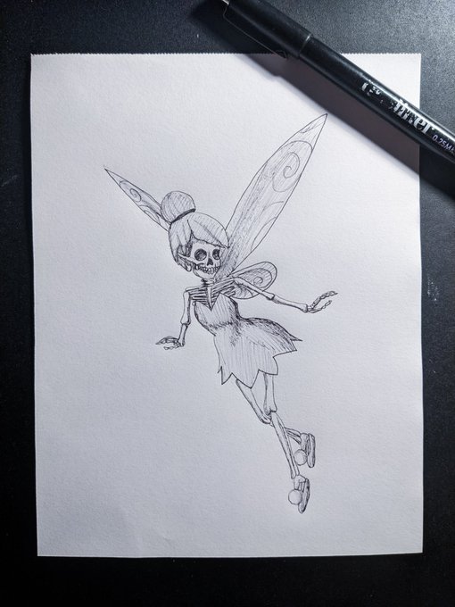 24. Fairy / Fée J'ai jamais vu aucun dessin-animé sur la fée Clochette dedans, et je trouve mon dessin vraiment pas terrible, comme ça c'est dit 😅 🧚♀️ #inktober22 #inktoberday24 #inktober2022day24 #Inktober
