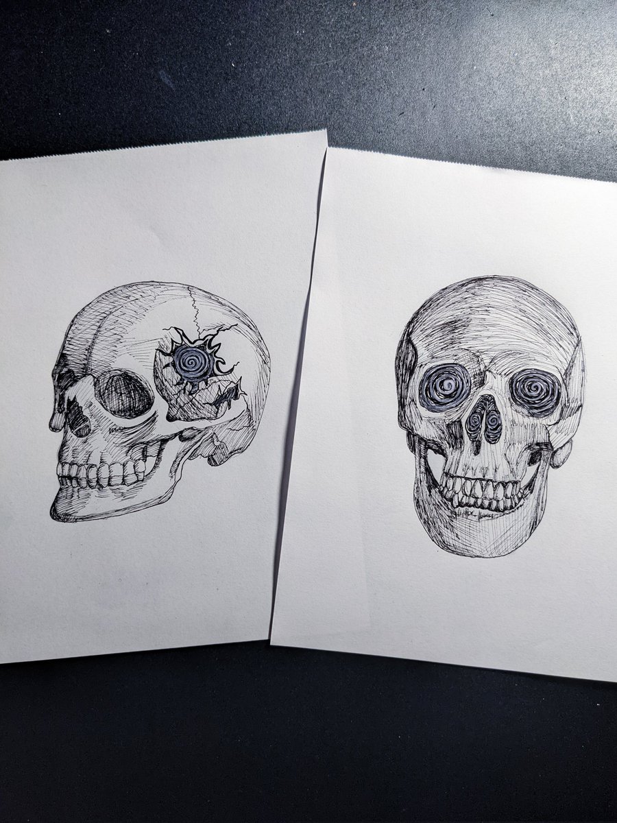 14. Empty / vide Bon je suis vraiment pas contente de ces dessins, je voulais créer une sorte de "void" à l'intérieur des crânes mais à l'évidence je n'ai vraiment pas réussi 😅 Tant pis pour cette fois ! #inktober2022 #inktober2022day14 #Inktober #inktoberday14