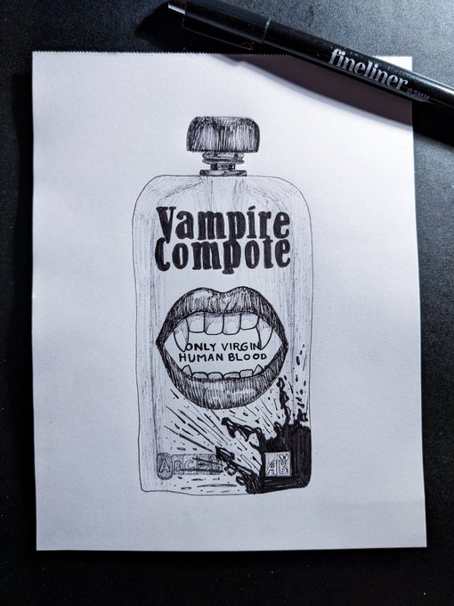 27. Snack / goûter Les vampires aussi aiment bien la compote si ça se trouve... 🦇 #Inktober #inktober2022 #inktober2022day27 #inktoberday27