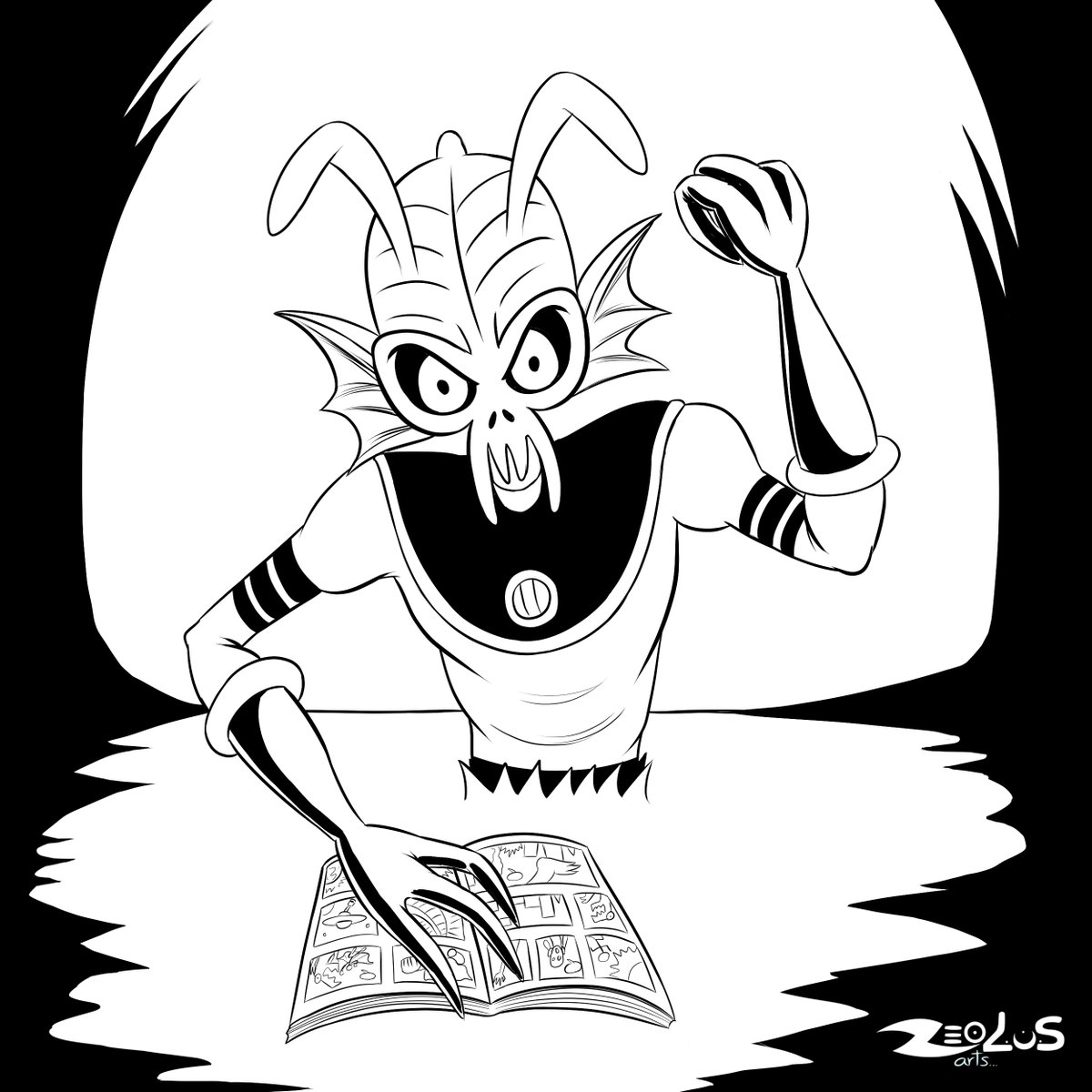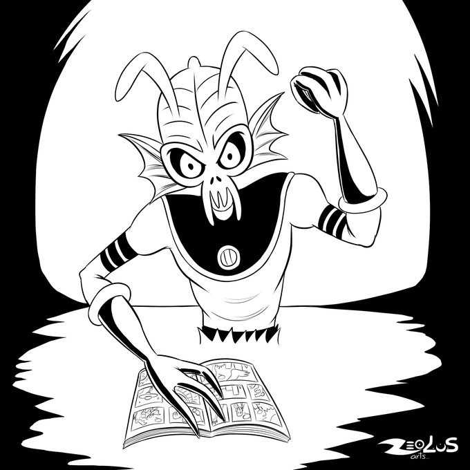 #Inktober, Day 12. Stuck. "You are a terrible superhero and your comics suck!" A #fanart of Stuck Chuck from #KidCosmic It's a fun series, my girlfriend and I enjoyed it a lot. #inktober2021 #stuck #art #blackandwhite