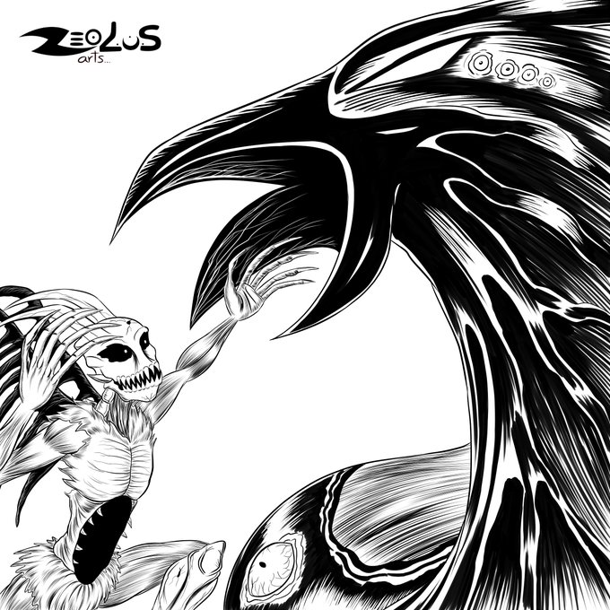 #Inktober, Day 22 (delayed again). #Open After being released the Ksudime Akadi flew to the skies and opened a portal to his dark realm, where countless horrors waited to be free. #inktober2021 #art #lineart #artwork #monster #originalcharacter